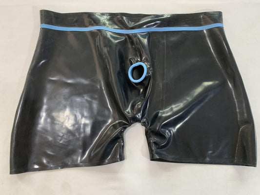 Mens Rubber Panties Mens Latex Shorts with Ring Hole