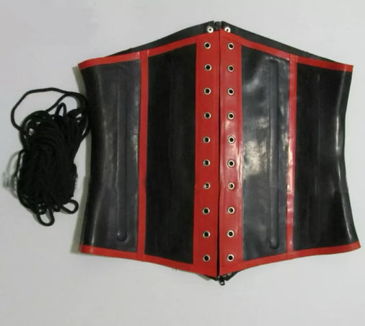 Latex Corset Black Red Latex Waist Trainer with Buckle & Back Lace