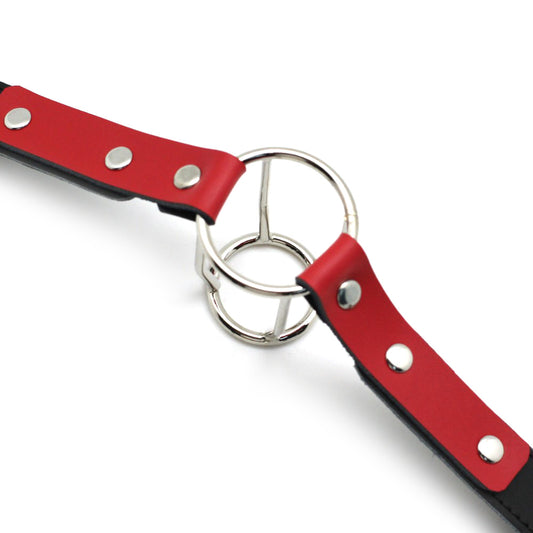 BDSM Double Ring Gag with Lockable Leather Strap